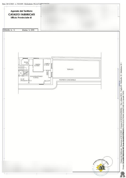con il civico n.14, interno 4, posto al secondo piano. L'immobile sviluppa una superficie catastale di