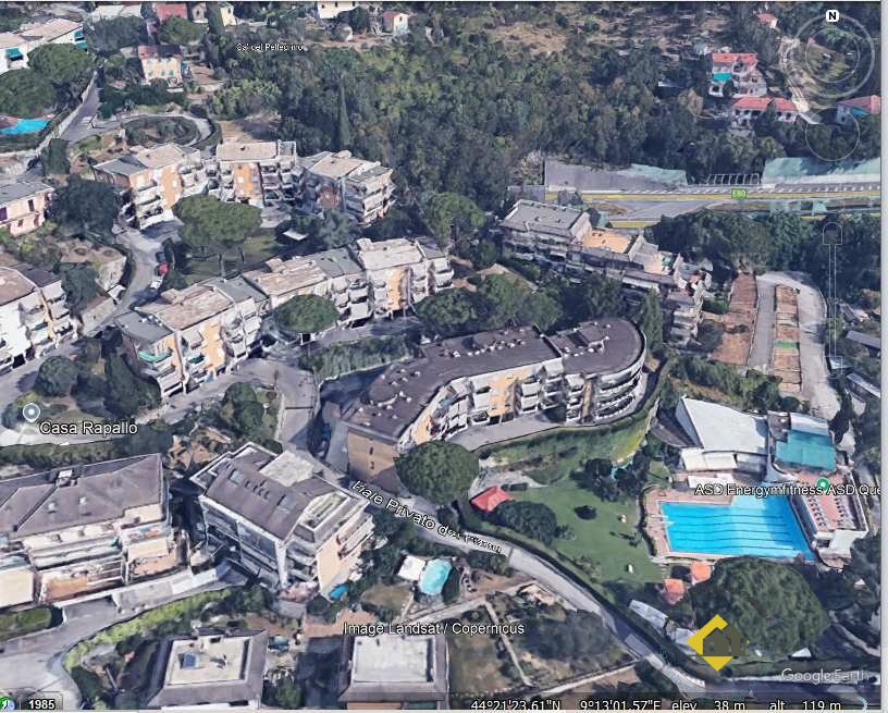 Quota pari a 1000/1000 piena proprietà di Bene 1 - Appartamento ubicato a Rapallo (GE) - via dei Lauri n. 14 A, interno 6, piano 2 facente parte del condominio "Tortuga" costituito di ingresso, soggiorno con angolo cottura, camera da letto e bagno. Dal soggiorno si accede a balcone con vista mare oltre a Bene 2 - Garage ubicato a Rapallo (GE) - via dei Lauri - Condominio Autosilo, interno E, piano 2 ubicato nell'autorimessa interrata in zona sottostante al condominio, denominata condominio "Autosilo"