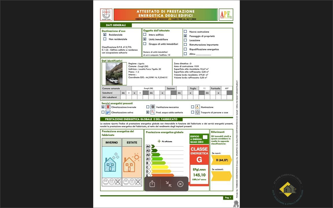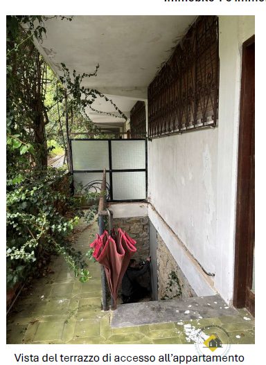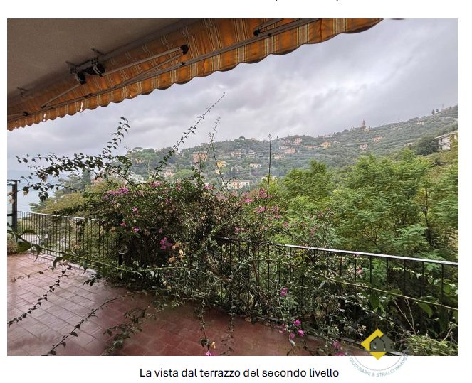 € 250.275Appartamento costituente la parte residenziale di una villetta compresa in una schiera di quattro elementi; la villetta ha al piano strada un box e spazi di servizio ed è in posizione mediana nella schiera. L'appartamento si sviluppa su due livelli a partire dal primo piano rispetto alla strada, sovrastante il box. L'accesso avviene tramite una scala esterna dalla strada e l'ingresso all'alloggio è al primo livello. Qui si trovano un ingresso- soggiorno, una camera da letto singola, un piccolo bagno, un disimpegno tra camera e bagno dove è installata una doccia, un ripostiglio ricavato nel sottoscala ed un vano a monte senza finestre. Al piano superiore, raggiungibile tramite una scala interna piuttosto comoda, si trova un locale soggiorno-pranzo con angolo cottura che occupa metà del sedime, un disimpegno, una stanza utilizzata come camera e una camera matrimoniale. Dal soggiorno e dalla camera matrimoniale si può uscire su un terrazzo vivibile avente profondità di circa 2 metri e lunghezza pari al fronte dell'appartamento. L'ubicazione è in una zona di alto pregio ambientale e turistico, nella valletta di "Marina di Bardi", a poca distanza dalla spiaggia, all'interno del complesso "Parco Tigullio" formato da diverse ville e villette servite da una strada privata. Il complesso si raggiunge tramite la strada statale Aurelia, da cui si distacca il viale privato, e lungo la quale passa un servizio di bus con frequenza oraria; esso si trova a circa 2,5 chilometri dal centro di Zoagli, a 4 chilometri dal centro di Rapallo ove si trovano negozi e supermercati e i principali servizi, e a 6 chilometri dal casello autostradale di Rapallo.